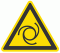 Знак безопасности. Предупреждающий знак. "Осторожно. Возможно затягивание между вращающимися элементами"