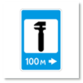 Информационный знак, металл 0,5-2,0 мм, ГОСТ 14918-2020, полимерное (порошковое) покрытие, ГОСТ 9.410-88, с нанесением изображения методом прямой полноцветной УФ-печати, разрешением не менее 1440 dpi, на полимерную поверхность, знак с отбортовкой методом реза углов и изгиба краев, отверстия и прорези в бортах знака.